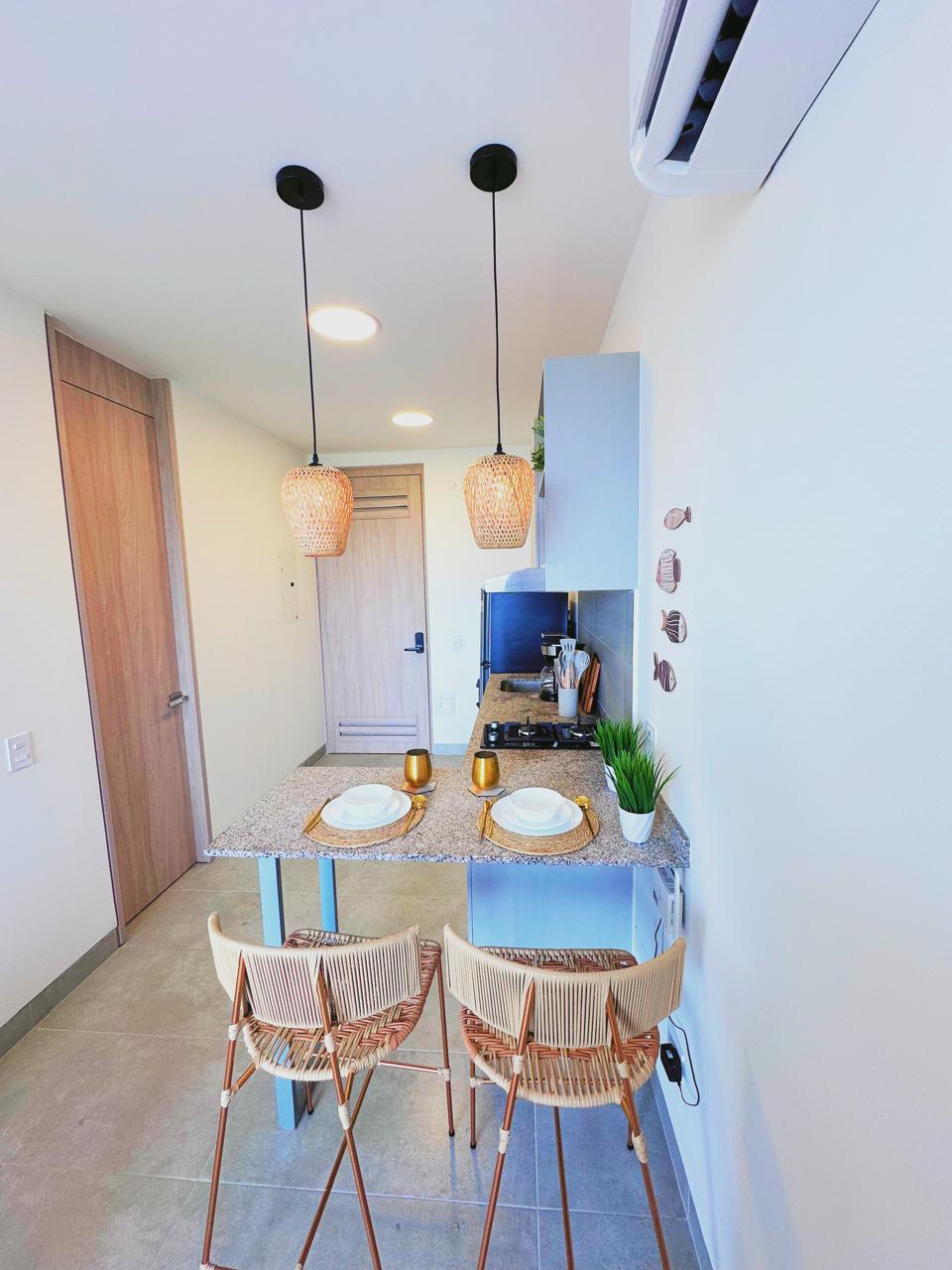 Հարմարավետ բնակարան, որը գտնվում է Սանտա Մարտայի ծայրամասում ՝ Օդանավակայանից ընդամենը մի քանի րոպե հեռավորության վրա, երեք ննջասենյակով և երկու լոգասենյակով, որը հագեցած է խմելու ջրի դիսպենսերով լի խոհանոցով ։ Կացարանն ունի ուղիղ մուտք դեպի լողափ ՝ ընդամենը մի քանի քայլ հեռավորության վրա, հիանալի ընդհանուր տարածք, այդ թվում ՝ լողավազաններ, թուրքական բաղնիք և սաունա ։ Կարևոր է ընդգծել, որ այն ունի պլաստմասե աթոռների հավաքածու և փոխադրվող սեղան, որպեսզի վարձակալները կարողանան դրանք օգտագործել լողափում ՝ լիակատար հարմարավետությամբ ։