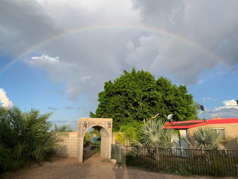 Մասնավոր 2,5 ակր մակերեսով հանգիստ լողավազանով, գնացքով և կրիաներով Փախեք դեպի 2,5 հեկտար մակերեսով մասնավոր անապատային կասիտա ՝ արմավենիներով, ալոեով և լեռնային տեսարաններով ։ Վայելեք լողավազան, ջակուզի, խաղահրապարակ, գրիլ, պատիո և նույնիսկ մանկական գնացք ։ Ներսում գտեք նոր վերանորոգված տարածք ՝ երկու երկտեղանի մահճակալով, բազմոցով, ամբողջական խոհանոցով և լվացքի մեքենայով կամ չորանոցով ։ Կարմիր ոտնաթաթերով կրիաների ընտանիքն ապրում է տեղում և սիրում է մնացած բանջարեղենը ։ Իր հանգիստ միջավայրով, առանձին մուտքով և անհավանական աստղագուշակությամբ ՝ սա Արիզոնայի անկրկնելի հանգիստն է ։