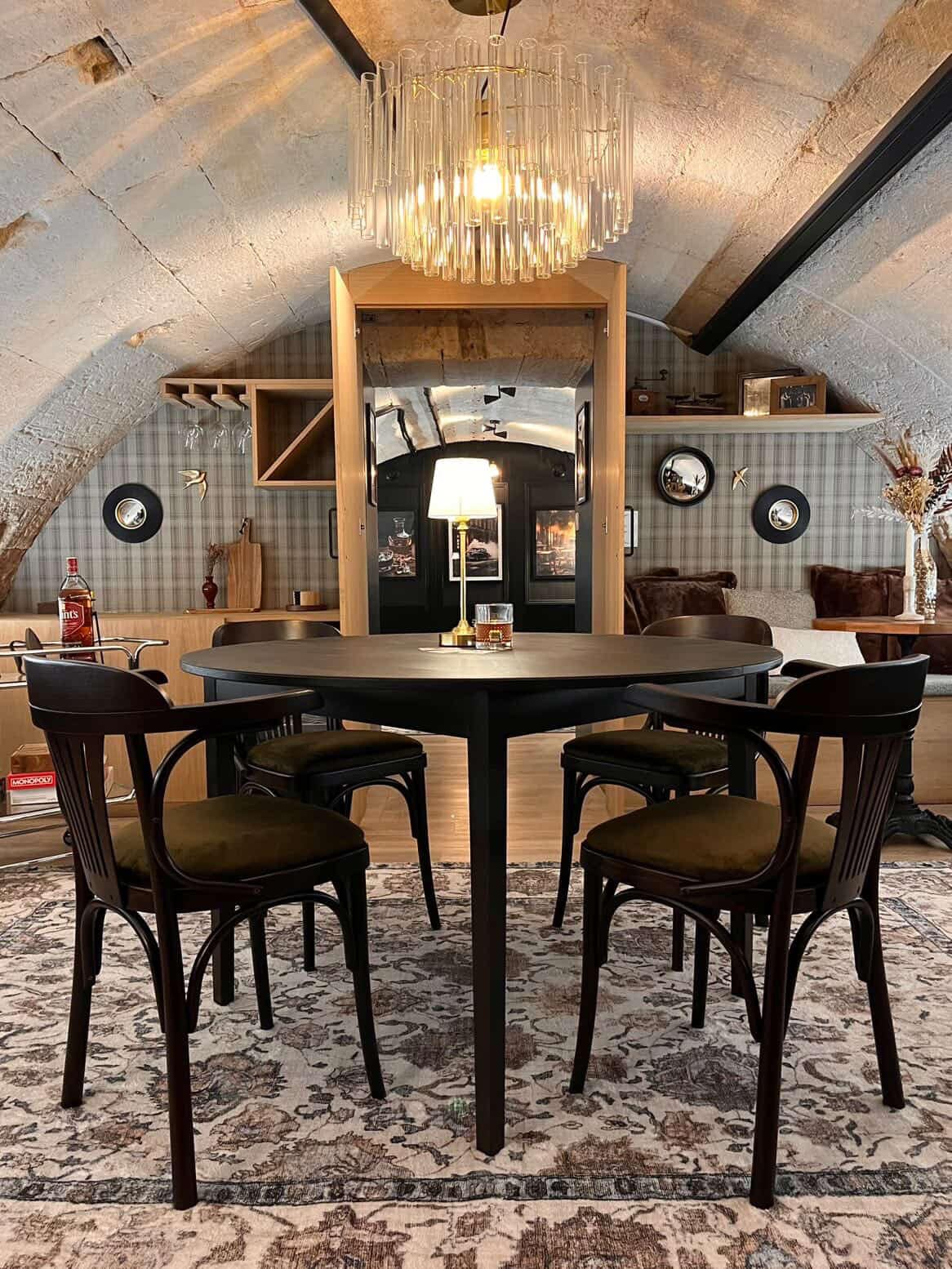 Plongez dans l'atmosphère feutrée d'un "Gentlemen's Club" chic et secret. Cet appartement d'exception, niché sous de magnifiques voûtes en pierre séculaires, offre une parenthèse de luxe. Détendez-vous dans votre grand jacuzzi privatif aux lumières tamisées, puis installez-vous dans l'espace aménagé en home cinéma exclusif. Décoration signature raffinée, touches dorées et confort haut de gamme vous attendent pour une expérience inoubliable. Le refuge parfait pour une escapade élégante.