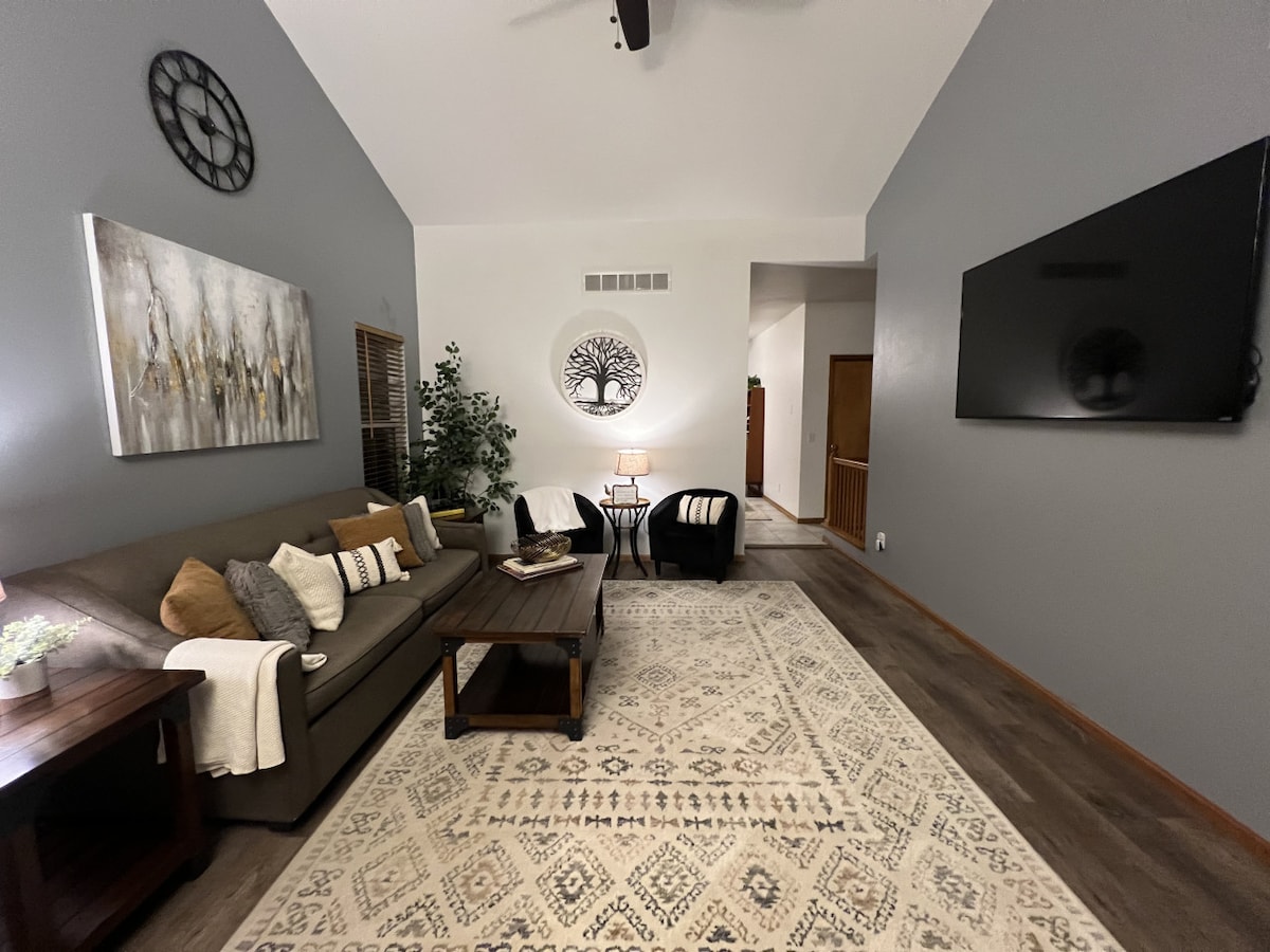 Մնացեք մեր նորակառույց ընտանեկան տանը ✔ 4,800 քառ. ֆուտ մակերեսով տուն, կատարյալ է երկարաժամկետ այցերի և ընտանիքների համար ✔ Պրոֆեսիոնալ մաքրված և մանրէազերծված ✔ 6 հոգանոց ջակուզի, գազաբալոն և լեռնային տեսարաններով տախտակամած ✔ Մեծ մահճակալ 🗲Արագ Wi - Fi - Իդեալական է հեռավար աշխատելու համար ✔ Լիովին կահավորված խոհանոց վերևում, խոհանոցիկ ներքևում ✔ Լվացքի մեքենա և չորանոց ✔ Թատերական սենյակ ՝ լրացուցիչ Netflix - ով բոլոր հեռուստացույցներում ✔ 15 րոպե USAF ակադեմիայից Մենք գիտենք, որ ձեզ դուր կգա ձեր այցը ։ Ամրագրեք այսօր ՝ անտառում մեր գեղեցիկ տունն ամրագրելու համար: