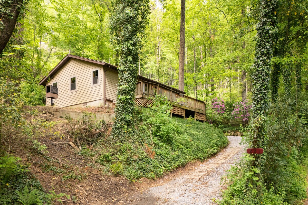 At 4000+ feet & only a 10 min walk to town on the Rhododendron Trail. Totally renovated 2017!! Light & sunny 3 bed/2 bath, 750 sq. ft. Originally built by my wife's g-grandmother in the 1940's. Floor to ceiling shiplap, 17 ft. ceilings, hardwoods, reclaimed barn wood, custom fixtures, heated marble/slate bath floors, tankless water heater, gas fireplace, porch, Wifi, TV, washer/dryer, kitchenette. Beautiful gardens! Classic Highlands charm with modern comforts! Hike, fish, shop, or relax!