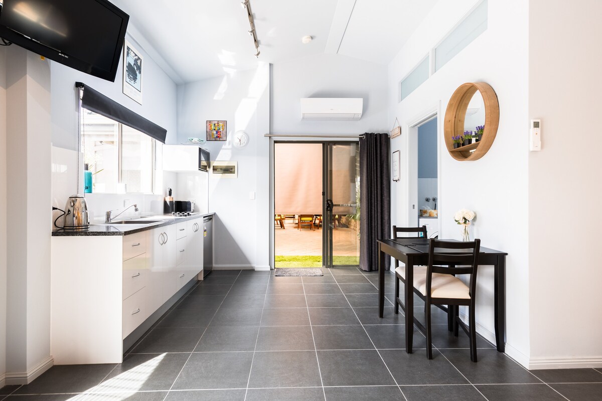 Բարի գալուստ The Nook ՝ ձեր հարմարավետ հանգիստը, որը գտնվում է խաղաղ Ադելաիդա Հիլզում ։ Այս ժամանակակից քոթեջ ստուդիան կատարյալ ապաստարան է նրանց համար, ովքեր ձգտում են հանգստություն և հարմարավետություն բնության գրկում: Իր խնամված դիզայնով և մտածված հարմարություններով ՝ The Nook - ն առաջարկում է ժամանակակից ապրելու և գյուղական հմայքի անխափան խառնուրդ: Անկախ այն բանից ՝ գինի եք խմում մասնավոր պատիոյում, ուսումնասիրում եք մոտակա խաղողի այգիները, թե պարզապես հանգստանում եք բուխարու մոտ, փորձեք մեր Օազիսում գտնվող Ադելաիդա Հիլզի գեղեցկությունը