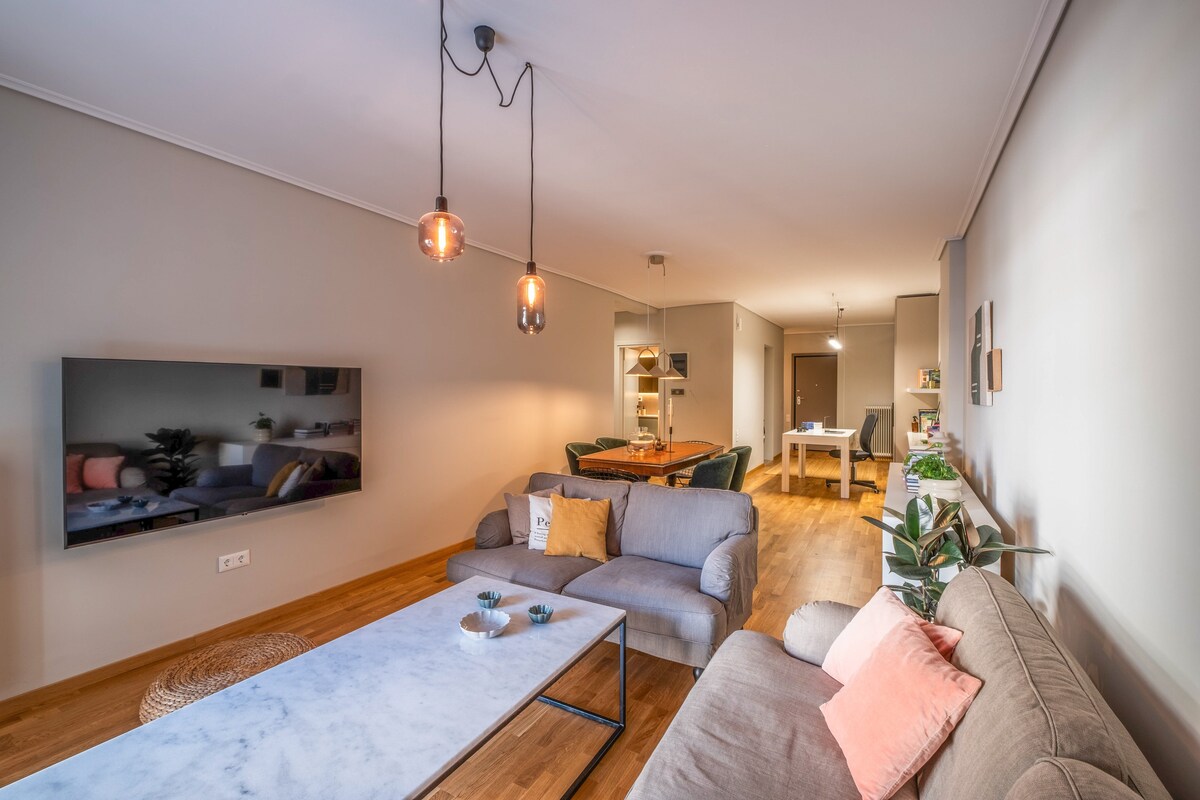 Փորձեք Աթենքն անզուգական շքեղությամբ ՝ ընդարձակ բնակարանից, որտեղ յուրաքանչյուր սենյակ պատմության պատուհան է: Հիացեք Ակրոպոլիսով ՝ ընդարձակ բնակելի տարածքից, որտեղ կան երկտեղանի բազմոցներ, ճաշասենյակներ և պատշգամբ, որը հրավիրում է քաղաքային բնապատկերին ։ Կատարյալ է մասնագետների համար ՝ ընդարձակ աշխատանքային տարածքը պարծենում է գերարագ ինտերնետով և ոգեշնչող համայնապատկերային տեսարաններով ։ Զբաղվեք ժամանակակից խոհանոցով, 2 լոգասենյակով և արևոտ ննջասենյակով ՝ երկտեղանի մահճակալով ։ Ընդունեք հարմարավետության և պատմության խառնուրդն այս աթենական հանգստի մեջ: