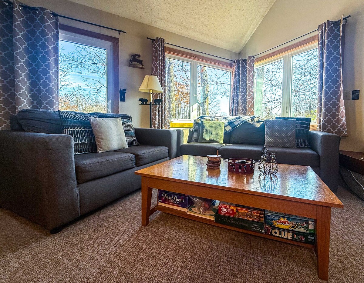 Cabin Fevers is your cozy UP chalet getaway with lots of beautiful and awesome things to see nearby, every day. Wake up to the peace of Michigan's Upper Peninsula, sip coffee on the back deck, surrounded by woods, and end your day unwinding in your private SAUNA or by the fire pit under the stars. Whether you're here for motorcycling, snowmobile trails, chasing waterfalls, skiing the nearby slopes, or dipping your toes in Lake Superior, Cabin Fevers UP is your perfect year-round chalet.