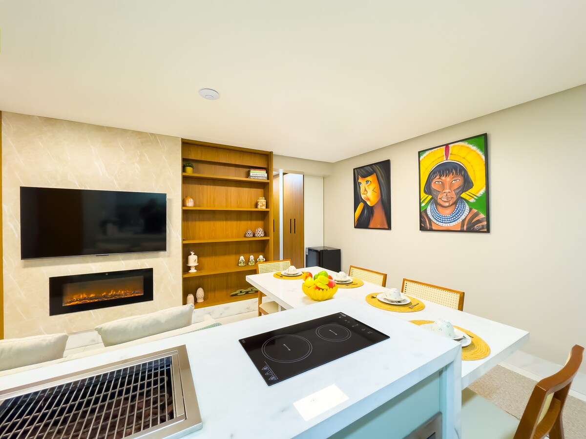 Localizado ao lado do principal Shopping da Cidade a acomodação oferece experiência de conforto luxo. Com Wi-Fi, Duchas Premium, Ar Condicionado, TV’s em todos os cômodos, cozinha completa, lavadora e secadora. Tenha conforto na melhor Localização da Cidade de Goiânia com experiência luxo.