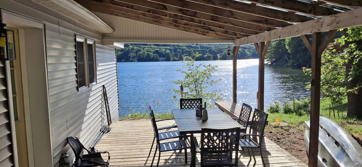 - Լճի/ափամերձ տուն Goodyear Lake - ում: - Հարմարավետորեն գտնվում է տեղական բեյսբոլի ճամբարների, SUNY Oneonta - ի և Hartwick քոլեջի մոտակայքում - Լճի մեծ տեսարանով պատիո և բակ ՝ խաղերի կամ խարույկների և լճափնյա տախտակամածի և նավամատույցի համար: - Վայելեք լողը, գերազանց ձկնորսությունը և ջրասուզակները ։ Մակույկ, անընդմեջ նավակ և ոտնակներով նավակ հյուրերի համար ։ - Թարմացված ընդարձակ տուն, այդ թվում ՝ բուխարի և օդորակիչ ։ - Ամեն ինչից հեռու, բայց բոլոր հարմարություններին մոտ ։