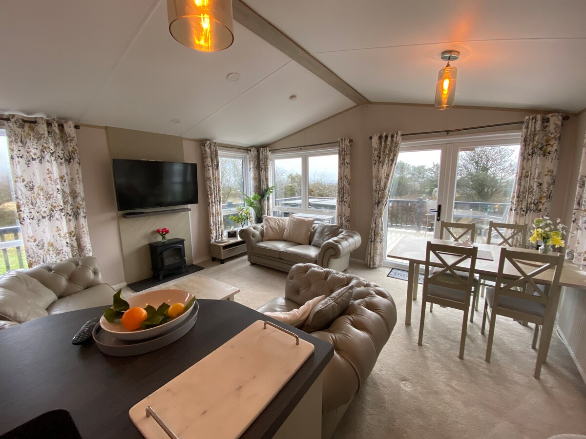 Spring has sprung & Summer season is ahead at Twilight Lodge & Hot Tub/Spa, 3 miles to beach, family friendly & a perfect place for couples (max 5 paying guests). New soft furnishings. All necessary appliances; oven, microwave, hob, air fryer, dishwasher, fridge/freezer & wine cooler. Living/dining open plan, large decking area. Enjoy the rural, sunset views. Perfect for a holiday. NOTE THIS IS A NONE SMOKING PROPERTY Note: ask Hot Tub availability, arrivals prior Xmas/NYE Bank Hols etc.