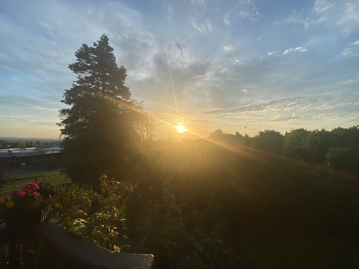 Առանձին առանձնաբաժին, որը գտնվում է Նյու Յորքի ժամանակակից ոճի գեղեցիկ տանը ։ Դուք կունենաք լիակատար առանձնություն և հարմարավետություն այս մեծ սենյակում ՝ առանձին մուտքով, ճեմասրահով, առանձին լոգասենյակով, պատշգամբով, պահարանով, միկրոալիքային վառարանով, մինի սառնարանով և Keurig - ով ։ Բանալիների պահոց և առանց բանալու մուտք ։ PDX - ին մոտ, հեշտ մուտք դեպի hwy 14, hwy 205 և i -5 ։ Բացի այդ, կարող եք ունենալ լրացուցիչ պաշտպանված կամ չոր կայանատեղի ավտոտնակում... և ավելի մեծ տրանսպորտային միջոց կամ քարշակ ունեցող ճանապարհորդների համար... շատ փողոցային կայանատեղիներ հեշտ են ներս/դուրս: