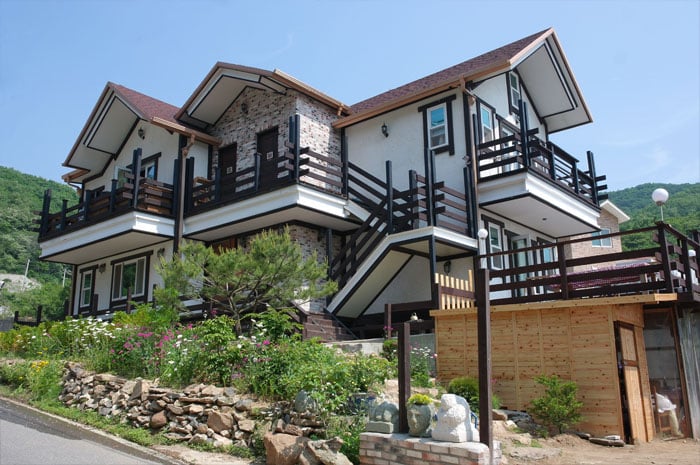 Հետնամասում երևում է մայրցամաքի սոճու անտառը, ձախ կողմում ՝ Յոնջու Սեովոնը, մոտ 200 պյոնգից բաղկացած պարտեզը, իսկ առջևի մասում ՝ դեպի հանգիստ գյուղական վայրերը ։ Այգին դեռ անավարտ է, ուստի ես շարունակում եմ ծաղիկներ և ծառեր տնկել ։ Հստակ օրը հեռվից երևում է Բուխանսանը, իսկ գարնան, ամռան, աշնան և ձմեռային սեզոնի ընթացքում կարող եք տեսնել գեղեցիկ ծաղիկներ և ծառեր ։ Այն հանգիստ կացարան է, քանի որ հանգիստ չէ, ուստի կարող եք հարմարավետորեն հանգստանալ ։ Այն շատ անկախ է և գաղտնի ՝ առանց առաջին հարկին կամ հարևան տանը դիմակայելու ։ Ինտերիերը զարդարված է սպիտակ և անգույն ՝ նախընտրելով պարզ բաներ ։ Թույլատրվում են փոքր տնային կենդանիներ, և կա 2 բարձ և 1 սննդի աման ։ Փնջային պրոյեկտոր և կարաոկե ունայնություն Կա երկու խոսափող, այդ թվում ՝ անլար խոսափողներ ։ Մենք տեղադրեցինք դեպի կտուր և այգի տանող ամպային կամուրջ ՝ ավելի հարմար դարձնելով այգին և տեսարանը վայելելը ։ Ամռանը կա երկու օդափոխիչ, սառը օդորակիչ, հովացուցիչ, գյոզայի արձան ։ Սա պանսիոնատ է, որն արդիականացվում է ամեն օր ։