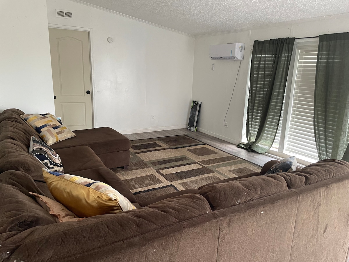 Let this be your home away from home. Enjoy your clean comfortable stay in this family friendly home. This home is deceivingly large and spacious. Including a large back yard for extra parking. Inside you will find 2 bedrooms with plush comfy beds, one bathroom, a large kitchen and dinning room, along with a spacious living room offering a pull out couch for extra sleepers. Each bedroom has its own AC unit. Centrally located in a peaceful neighborhood, making your stay nice and convenient.