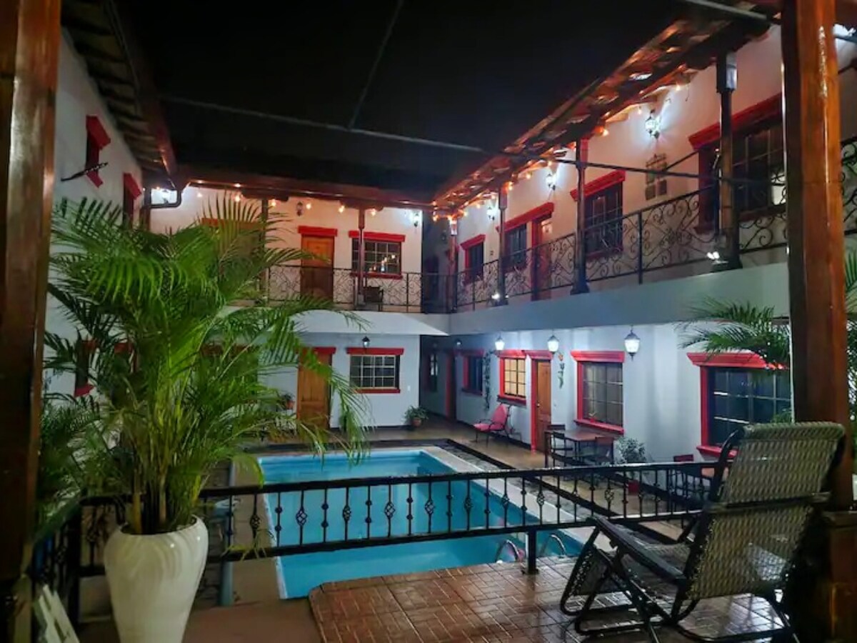 Escape to a quiet, safe corner of Granada—just a short walk from the city center and beautiful Lake Nicaragua. Our charming, family-run hotel offers a warm and welcoming atmosphere, with comfortable rooms and optional air conditioning, With the hosts living on-site, you’ll feel like part of the family while enjoying privacy and tranquility. It’s the perfect spot to relax, explore, and experience the authentic side of Granada.