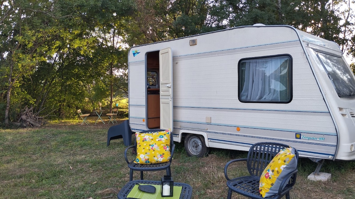 Գիշերը անցկացրեք մեր քարավանում, որտեղից բացվում է 14 - րդ դարի դղյակի տեսարան ։ Հանգստացնող պահ ՝ Վինգեան գետի ափին ։ Հնարավորություն բացահայտելու Château de Rosières - ը այցի ընթացքում (ներառյալ) կամ փախուստի խաղը: Քարավան ՝ 2 հոգու համար, տրամադրվում են սավաններ ։ Ուշադրություն, քարավանում չկա ջրի և էլեկտրաէներգիայի հասանելիություն կամ Wi - Fi ։ Այնուամենայնիվ, 300 մետր, ամրոցի հավելվածում. մենք տրամադրում ենք զուգարան, ցնցուղ և սառնարան: