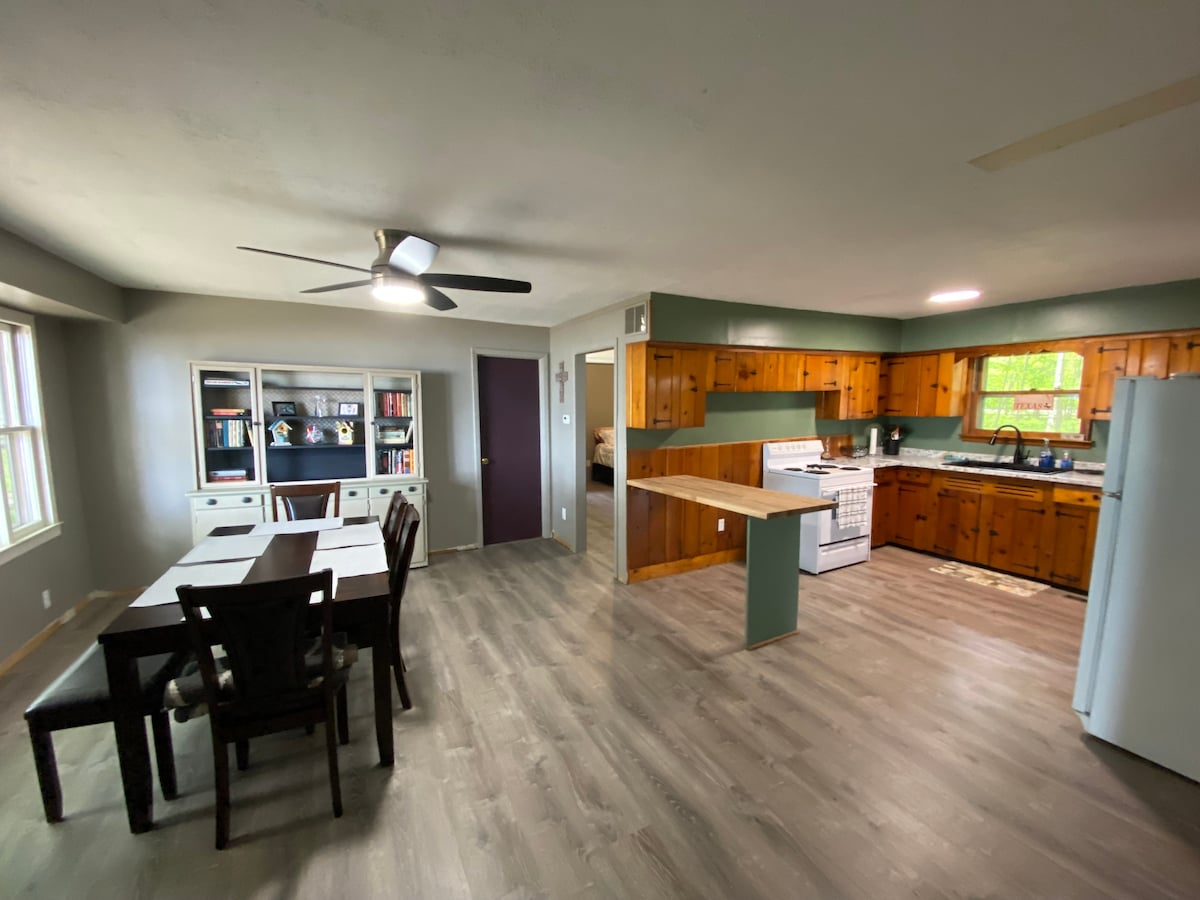 Lakefront- awesome for 2 families!! Extra guest fee waived for kids! This rustic and cozy vintage cottage is the perfect place to unplug and relax with family and friends. Spacious and roomy for any family, White Birch Cottage is a lovely draw back to simpler times to reconnect with nature and the ones you love. Includes a week’s worth of lake toys for a memorable vacation. Enjoy kayaking, paddle boarding, swimming, fishing, biking, campfires, and beautiful sunsets at this homey cedar cottage.