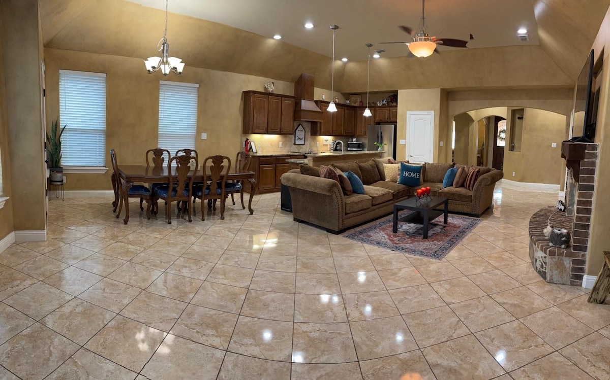 Relax with the whole family at this peaceful 4-bedroom Home in Grand Prairie Texas. This home has four queen beds to be able to host a maximum of 8 guests. Enjoy a dip in our Cowboy Pool to refresh from the Texas Heat or enjoy some delicious smores at our outdoor Fire Pit. We have a gas grill for you to BBQ it Texas style or enjoy a meal in our fully stocked kitchen! We are centrally located in Grand Prairie close to all the outside attractions (AT&T Stadium, Epic Central, The GP Outlets, etc.)