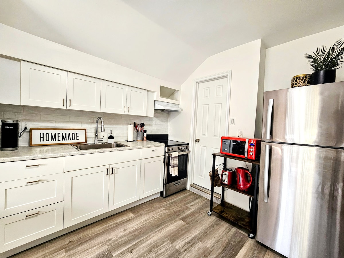 Տեղավորվեց Լոնդոնի Օնտարիոյի Հին Իսթ Վիլիջի սրտում ։ Գեղեցիկ անտառապատ լոտի հետնաբակում գտնվող այս հյուրատունը մեկուսի է փողոցից հեռու, և հարևանները թողնում են այն հանգիստ, անխափան հանգստի համար: Բացօթյա պատիո, հոթուբ և լաունջ տարածք, որոնք հասանելի են ամառային գիշերների այդ քաղցր հանգստի համար ։ Լոնդոնի լավագույն զվարճանքներից և ճաշկերույթներից րոպեներ հեռավորության վրա: 150 -179 սմ մահճակալ (150 -179 սմ) Քաշեք բազմոցը հյուրասենյակում: