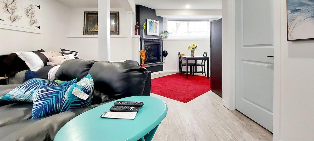Բարի գալուստ The Riverstone Retreat ։ Բոլորովին նոր 1 ննջասենյակի ցածր մակարդակի հյուրերի առանձնաբաժին ՝ առանց բանալու մուտքով ։ Վերադարձեք և հանգստացեք այս հանգիստ, խաղաղ տանը և թաղամասում ։ Տունը մոտ է 40 մայրուղուն, Իսթլինկ կենտրոնին և րոպեների ընթացքում հասնում է Shoppers drugmart, Superstore, Costco, Bestbuy, Winners և օդանավակայան ։ Մեկ ննջասենյակ ՝ երկտեղանի կարգավորելի մահճակալով, 1 լոգասենյակով և հյուրասենյակի ամբողջական տարածքով ՝ Roku հեռուստացույցով, բազմոցով և թաց բարով ։ Այս տարածքը ծխի և տնային կենդանիների համար անվճար է ։