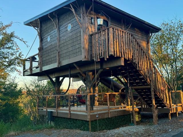 Այս վայրն այլ բան է, բացի սովորականից ։ Smoky Mountain Treehouse - ն իր տեսակի մեջ միակն է տարածաշրջանում ՝ շքեղ, անհատականացված տնակ ՝ տպավորիչ տեսարանով և տան հարմարավետությամբ, այնուհետև ՝ մի քանիսը ։ Անցեք 40- դյույմանոց ճոճվող կամուրջը և մտեք մեծ կամարաձև դուռը, որտեղ ձեզ կտեղափոխեն մի վայր, որտեղ ծառի տնակի նոստալգիան համակցված է ժամանակակից շքեղության հետ: Այս յուրահատուկ սեփականությունն ունի այն ամենը, ինչ ձեզ հարկավոր է ռոմանտիկ կամ արկածներով լի հանգստի համար: