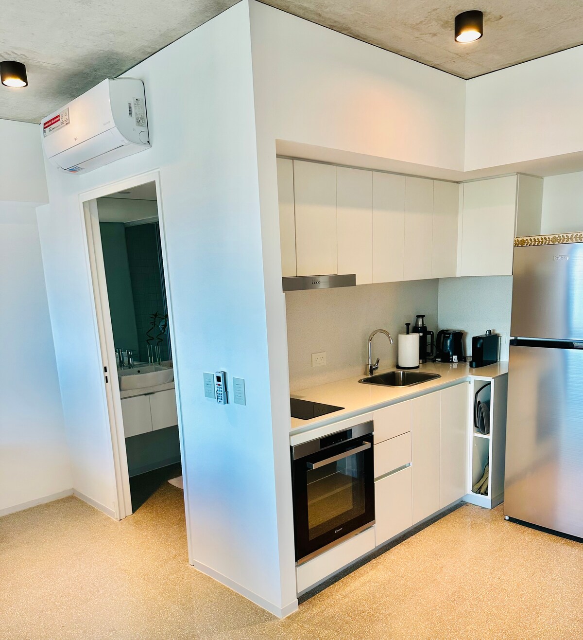 Բոլորովին նոր ստուդիո բնակարան ՝ կիտչինետով, լոգասենյակով և պատշգամբով, որտեղից բացվում է հիանալի տեսարան դեպի Ռեկոլետայի սրտում ։ Թույն ժամանակակից ձևավորում, լիովին կահավորված և անվտանգ: Սմարթ հեռուստացույց ՝ մալուխով և Netflix - ով (մուտք գործեք ձեր հաշվին )։ Շենք հիանալի հարմարություններով ՝ ջեռուցվող փակ լողավազան, բացօթյա լողավազան ՝ սոլյարիով, սպա ՝ մերսման սենյակով և շոգեբաղնիքով, և մարզասրահ: Քայլելու հեռավորությունը դեպի լավագույն ռեստորաններ, բարեր և սրճարաններ, ինչպես նաև ավտոբուսի և մետրոյի կայարան ։