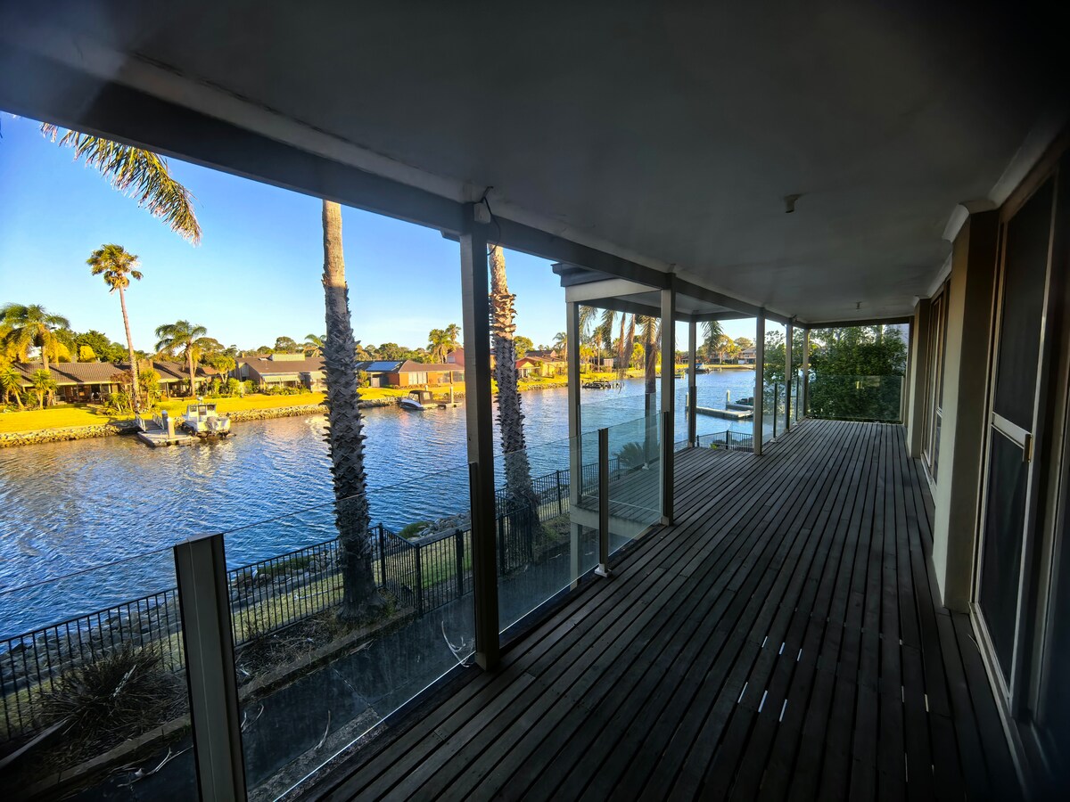 Absolute waterfront with sandy beach & your own boat mooring for all of your water toys! Great for kids, families, groups or a couples retreat. This bright and spacious single level resort style home will relax and captivate you the moment you arrive. Unwind and enjoy the view from the waterfront alfresco with outdoor kitchen. Relax in the spa and enjoy the water vistas and bird life, jump on a kayak and explore the canals. Bring your boat to moor out the back, enjoy fishing and the bay.