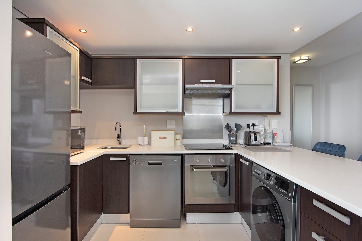 Խոհանոցն ամբողջությամբ ապահովված է ամանալվաց մեքենայով, միկրոալիքային վառարանով, լվացքի մեքենայով և չորանոցով ։ Բնակարանն ունի 2 ննջասենյակ, 2 ամբողջական լոգասենյակ ՝ լոգարանով և ցնցուղով, հարթ էկրանով հեռուստացույց: Հյուրասրահը և գլխավոր ննջասենյակը նայում են օվկիանոսի գեղեցիկ տեսարանին և շատ բնական լույս են հաղորդում այս տարածքներին: Wi - Fi - ի պահուստավորում (Power Station Dock )։ Հանրաճանաչ կետեր են Mouille Point, V&A Waterfront, Քեյփթաունի ֆուտբոլի մարզադաշտ, փարոս և շատ սննդի կետեր, որոնք պարզապես քայլում են հեռավորության վրա: