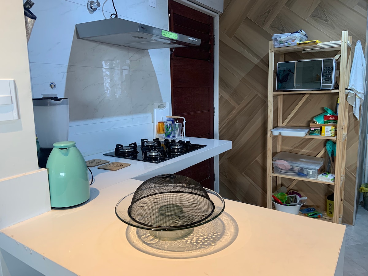 Հարմարավետ ստուդիո բնակարան, որը գտնվում է Պոնտա Վերդեում ՝ Մաչեյոյի ազնվական թաղամասում ։ Գտնվում է լողափից 300մ հեռավորության վրա, Պաջուչարայի արհեստագործական շուկայից 650 մ հեռավորության վրա, Մաչիոյի բնական լողավազաններից 1.8 կմ հեռավորության վրա և գտնվում է Maceió - ի սրտում: Այն գտնվում է Մեյեյի սրտում: Ստուդիան ներառում է Smart TV, Wi - Fi և առանձին լոգասենյակ ՝ ցնցուղով, վարսահարդարիչով և էլեկտրական արդուկով, իսկ խոհանոցում կա միկրոալիքային վառարան, սառնարան, գազօջախ, սրճեփ մեքենա, սենդվիչ պատրաստող սարք , կաթսաներ և թավաներ,սպասք, բաժակներ, գինու բաժակներ: