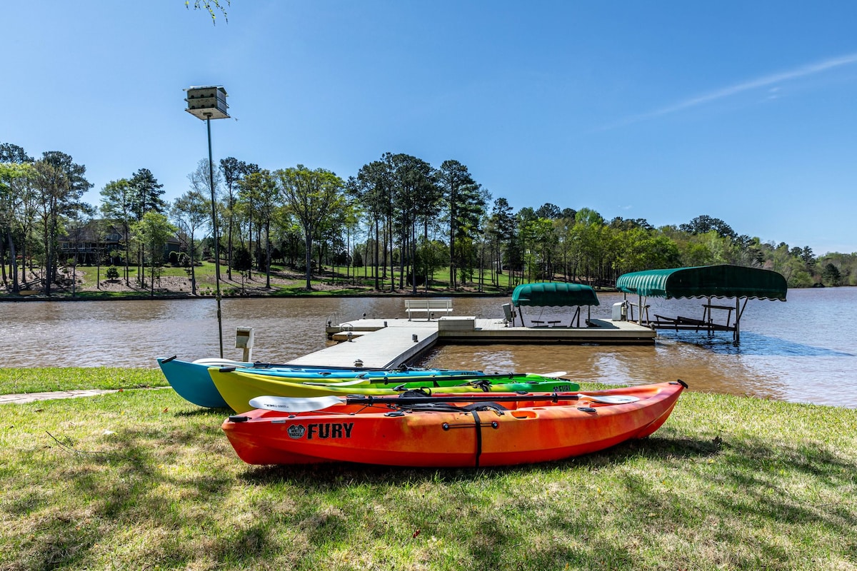 Reduced Winter Rates! The weather has changed but the view hasn't! Perfect for large groups & multiple families; sleeps 14; beautiful lake view. Ask us about our Visitor's Guide & upgrade opportunities. Close to: - Golf fans: The Masters & Women's Amateur at the Augusta National. - College visits/graduation: UGA in Athens; Georgia College & Oxford College of Emory in Milledgeville; Emory, Clark Atlanta, Morehouse, SCAD, GA Tech & State in Atlanta. - Covington, for "Vampire Diaries" fans.