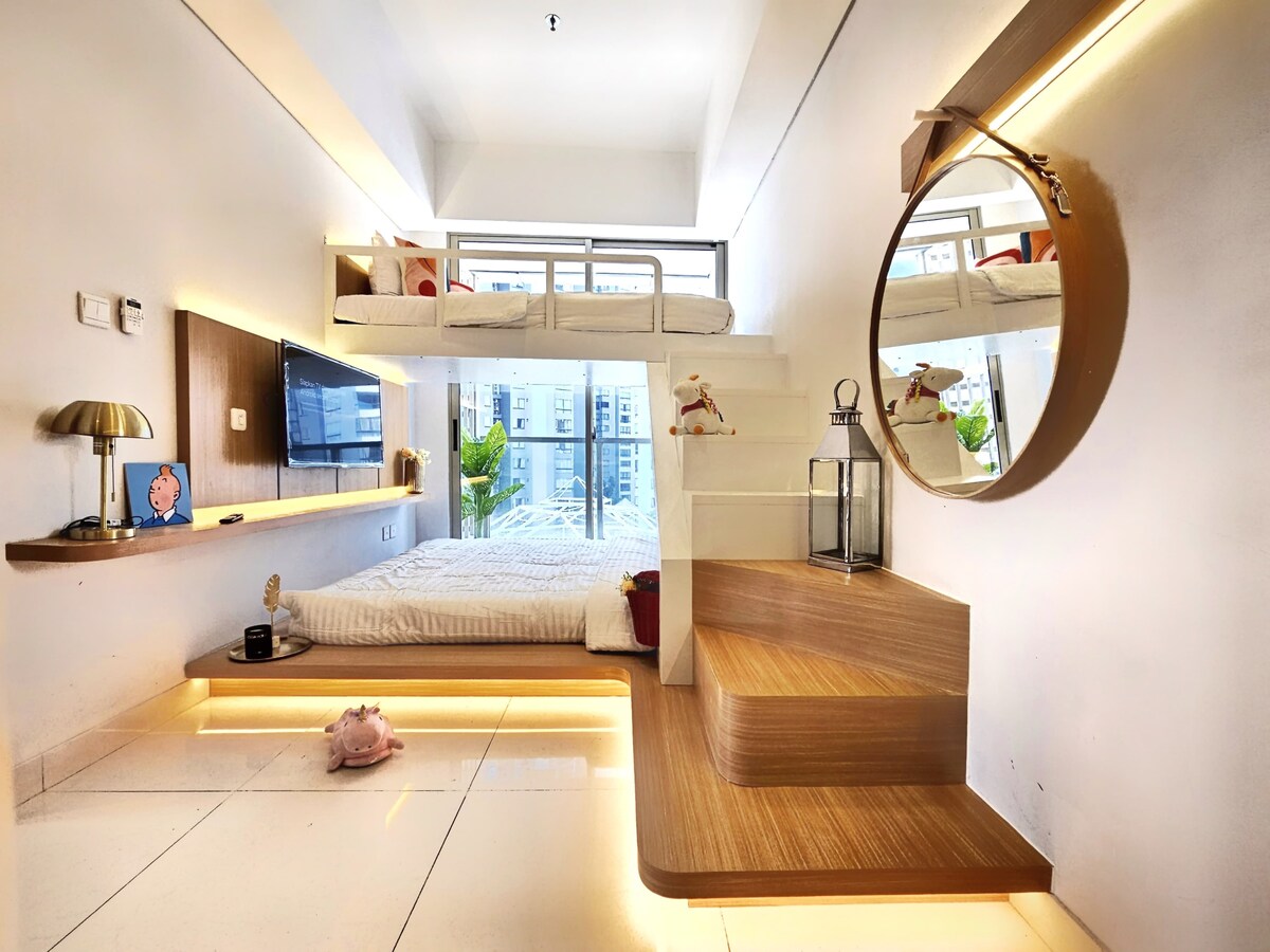 ✨ 2 Bedroom • 1 Bathroom ✨ All 2BR units here come in the same size — 50 sqm, no bigger, no smaller. --- Since hotels don’t always fit families, this unit lets everyone stay together with better value. --- To host up to 7 guests, we maximize space by: 🛏️ A tatami bed (queen size) 🛏️ A 2-layer bunk bed master Room 🛏️ A 2-layer (2) single bed in the 2nd room 📐 For clarity, please see our 2D layout (in Living Room photos). We share this upfront so expectations are aligned from the start