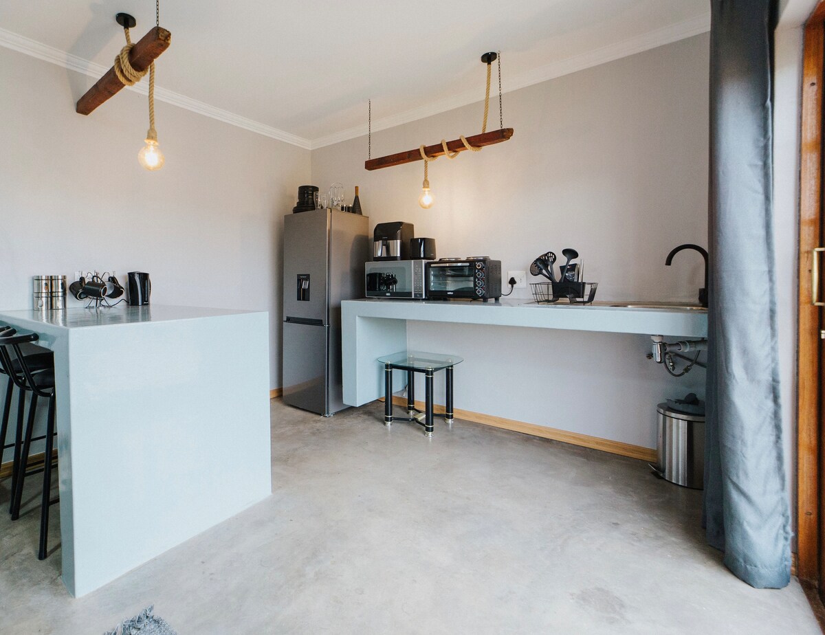 Վայելեք շքեղ ինքնասպասարկման հանգիստը The Olive Branch Guesthouse and Animal Sanctuary-ում՝ բնությամբ շրջապատված խաղաղ հանգստավայրում։ Հանգստացեք նորաձև տարածքում, որտեղ կա սառը ջրով լողավազան՝ հանգստացնող փուչիկներով, բացօթյա ցնցուղ և 190x203 սմ մահճակալ։ Վայելեք լիովին կահավորված խոհանոցը, օդորակիչը, DStv-ի բոլոր ալիքները, անսահմանափակ Wi-Fi-ը և մասնավոր խորովածի տարածքը՝ հեշտ և հանգիստ ապրելակերպի համար։