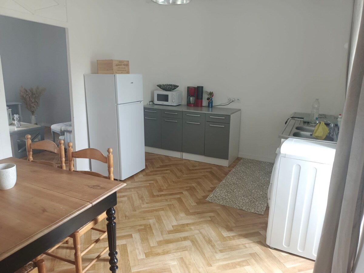 Լիովին նոր, հարմարավետ և ջերմ, ես ձեզ առաջարկում եմ իմ ստուդիան 1 կամ 2 հոգու համար ՝ իմ բնակելի տան առաջին հարկում: Կացարանը լիովին անկախ է, դուք ունեք ձեր մուտքը, տեռասը և այգին: Լոգասենյակը լուսավոր է, իսկ մոնտաժված խոհանոցը ՝ լիովին կահավորված ։ Ես հասանելի եմ և հասանելի ՝ ձեր կարիքները բավարարելու համար ։ Սիրով սպասում ենք ձեզ ։