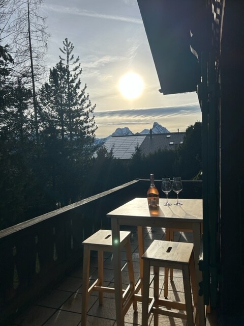 Gstaad փաթաթված պատշգամբ ՝ ալպիական տեսարանով