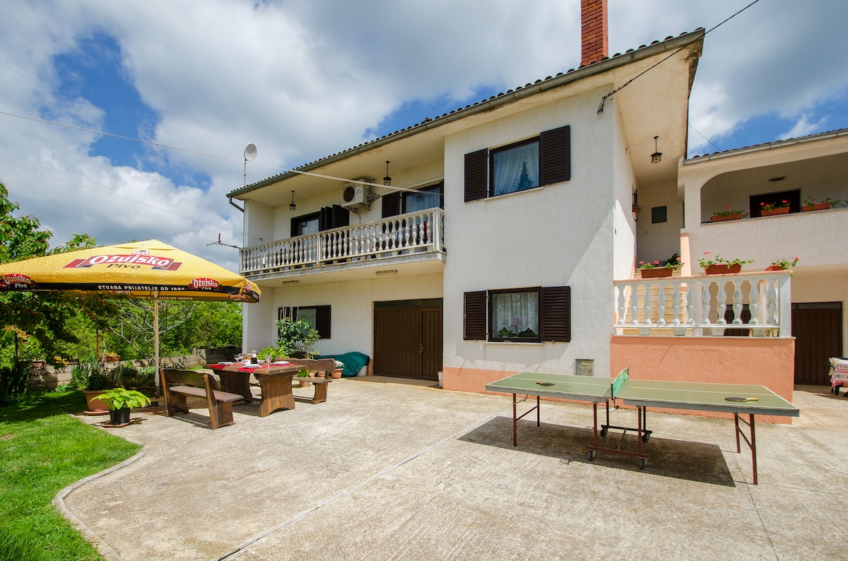 Apartment 'Na krasi' is located in the center of Istria, in a small village Grzini, near Žminj. Consist of two bedrooms,living room,kitchen,dining area and bathroom. Spacious green garden,large swimming pool,barbecue,sports. Also has a parking area.