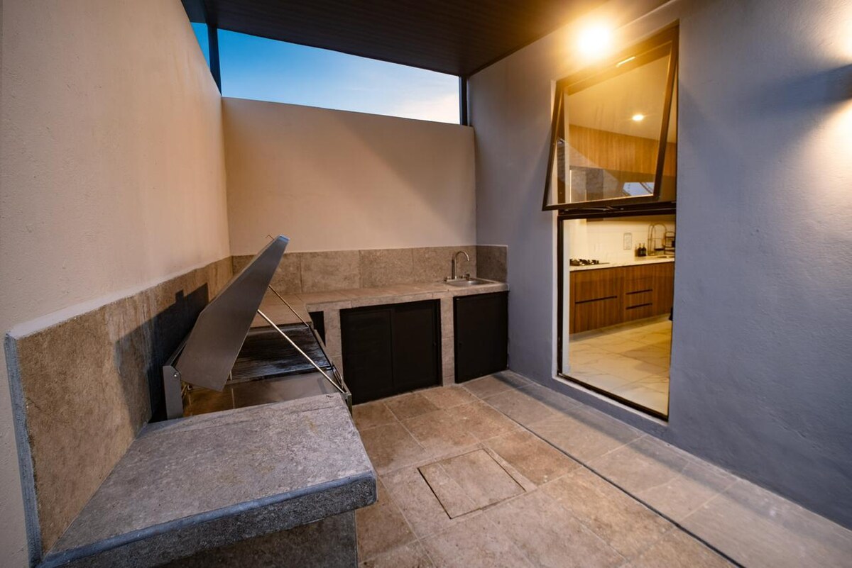 Գուաչիմոնթոնես հնավայրից մի քանի րոպե հեռավորության վրա գտնվող մեր տունն ունի ապահով ավտոտնակ, ննջասենյակ, փակ լոգասենյակ և մեկ այլ սենյակ ՝ դրսից ։ Դա ձեր կատարյալ վայրն է վայելելու համար Ժամանակակից ճաշակով զարդարված մեր ընդարձակ, բաց տունն ունի այն ամենը, ինչ անհրաժեշտ է ձեր ամբողջ խմբի համար: Հանգստացեք գեղեցիկ արահետով քայլարշավի ժամանակ գեղեցիկ գետով կամ այցելեք Թյուչիտլան գյուղի մեր տեղական արհեստագործական խանութներն ու ռեստորանները: