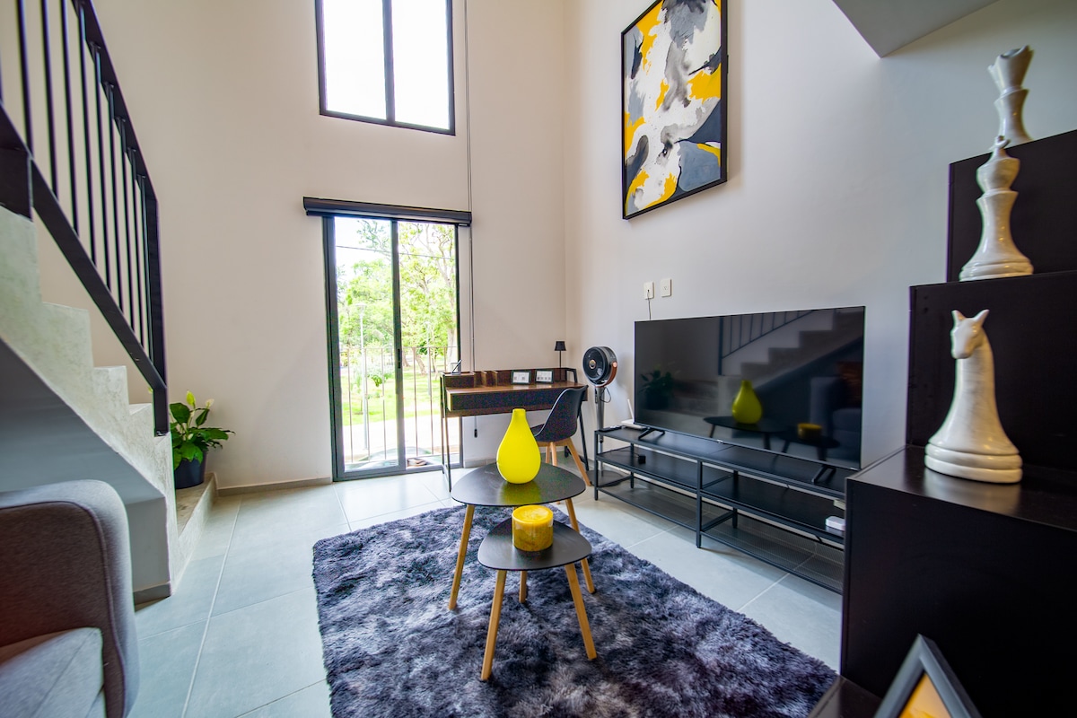 Շքեղ բնակարան Գվադալախարայում, որը զարդարված է դիզայներ Ֆերնանդա Նիշինոյի կողմից, և կահույքով, որը հարմարեցված է ձեռքերի պաստառներին: Մնացեք Պրովիդենսիայի ամենահիասքանչ և նոր շենքերից մեկում, ֆինանսական գոտու մոտակայքում, Կոլոմոս անտառում, Պունտո Սան Պաուլոյում և Անդարեսից ընդամենը 10 րոպե հեռավորության վրա: Բացառիկ հարմարավետ տարածք ՝ բոլոր հարմարություններով, որոնք ձեզ հիանալի տուն կդարձնեն ։ Այն ունի շուրջօրյա անվտանգություն և սեփական ավտոկայանատեղի ։