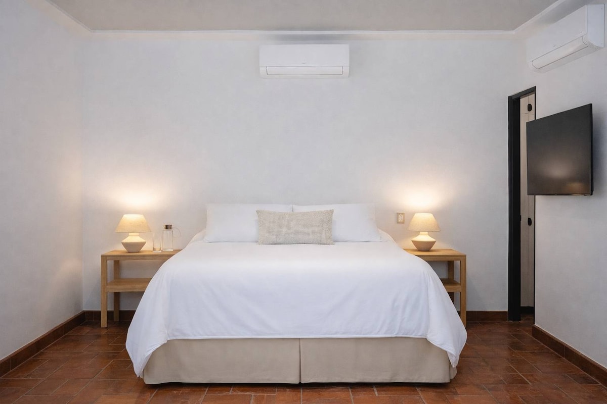 Մնացեք այս էլեգանտ բուտիկ-ստուդիայում, որը գտնվում է առաջին հարկում և հասանելի է սանդղամուտքով։ Այն կատարյալ է զույգերի կամ միայնակ ճանապարհորդների համար, որոնք փնտրում են նրբաճաշակ և հարմարավետ տարածք Սան Միգելի պատմական կենտրոնի սրտում։ Այն ունի 152x203 սմ մահճակալ, անձնական լոգասենյակ՝ անձրևային ցնցուղով, և ժամանակակից դիզայն՝ գաղութային տարրերով, որոնք արտացոլում են քաղաքի էությունը։