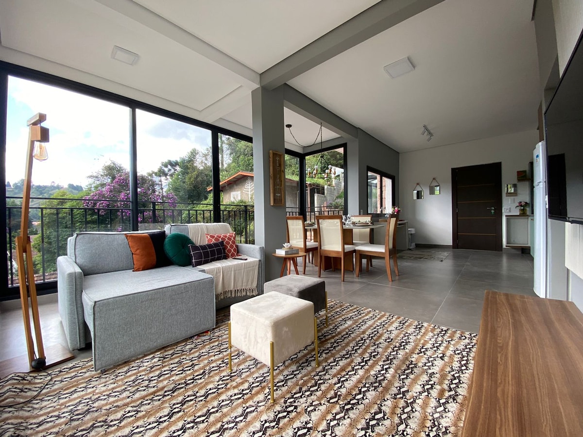 Բնակարան լեռան մեջտեղում ՝ 1750 մ բարձրությամբ ։ Մենք գտել ենք գեղեցիկ կոնդոմինիումում, որտեղ կան բազմաթիվ բնություն, բույսեր և թռչուններ ։ Մեր գտնվելու վայրը արտոնյալ է, մենք մոտ ենք կառավարական պալատին, Cláudio Santoro - ին, Museo Felícia Leirner - ին: Մեր հյուրերին խնդրում ենք նախքան ամրագրելը կարդալ տան կանոնները ։ Որպեսզի ձեր այցի ընթացքում անհարմարություն չլինի ։