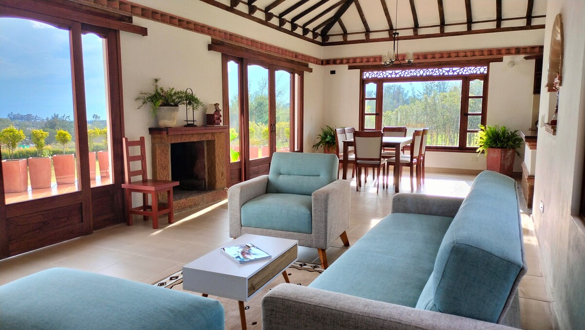 Վիլլա դե լոս Խուանեսը կատարյալ հանգիստ է հանգստանալու և բնության հետ շփվելու համար: Մեր հարմարավետ տունն առաջարկում է երկու առանձին սենյակ ՝ երկտեղանի մահճակալներով, ճաշասենյակ, լոգասենյակ ՝ էլեկտրական ցնցուղով, աշխատանքային ուսուցում, լիովին կահավորված խոհանոց, բացօթյա պատիո ՝ խորովածով, առանձին կայանատեղի և 3,400 քառակուսի մետր կանաչ տարածք ։ Մենք տրամադրում ենք արագ Wi - Fi, հեռուստատեսություն, գրքեր և սեղանի խաղեր ։ Թույլ տվեք ձեզ հմայել այն խաղաղությամբ, որը ոգեշնչում է այս գեղեցիկ վայրը: Վիլլա դե Լեյվայից (5 կմ) ընդամենը 10 րոպե հեռավորության վրա ։