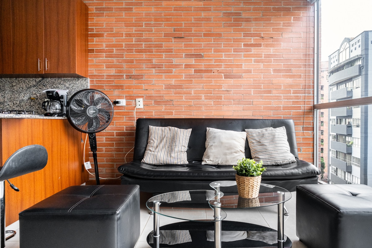Ժամանակակից ավտոմատացված բնակարան ՝ առանձին սենյակով, հյուրասենյակով և խոհանոցով, ամբողջովին կահավորված, 200 ՄԲ ինտերնետով, օդորակիչով և քաղաքի տպավորիչ տեսարանով ։ Շենքը գտնվում է Medellín, El Poblado - ի լավագույն թաղամասում, EAFIT համալսարանի, Golden Mile - ի, առեւտրի կենտրոնների, սուպերմարկետների, ռեստորանների եւ Aguacatala մետրոյի կայարանի մոտ: Այն ունի աշխատասենյակ, սրճարան, մարզասրահ և շուրջօրյա հսկողություն: