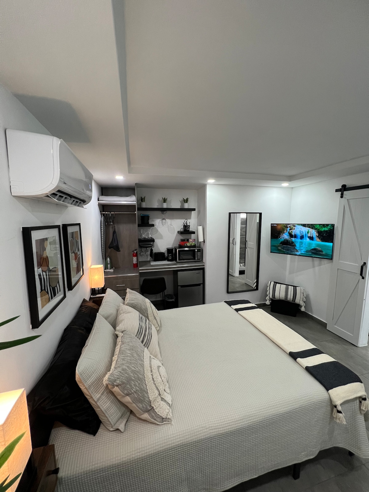 Բացահայտեք Սան Խուան ուսումնասիրելու կատարյալ քաղաքային վայր։ Այս ժամանակակից և նորաձև բնակարանը, որը գտնվում է Սան Խուան միջազգային օդանավակայանից ընդամենը 15 րոպե հեռավորության վրա և մոտ է լավագույն ռեստորաններին, սրճարաններին, առևտրի կենտրոններին և Պուերտո Ռիկոյի ամենահայտնի տեսարժան վայրերին, ստեղծված է հարմարավետության, հարմարավետության և հանգստի համար։ Անկախ նրանից՝ այցելում եք զբոսաշրջության նպատակով, կարճատև հանգստի համար, թե քաղաքը ուսումնասիրելու համար, այս բուտիկ ոճի բնակարանը առաջարկում է այն ամենը, ինչ ձեզ հարկավոր է հաճելի փորձառության համար։
