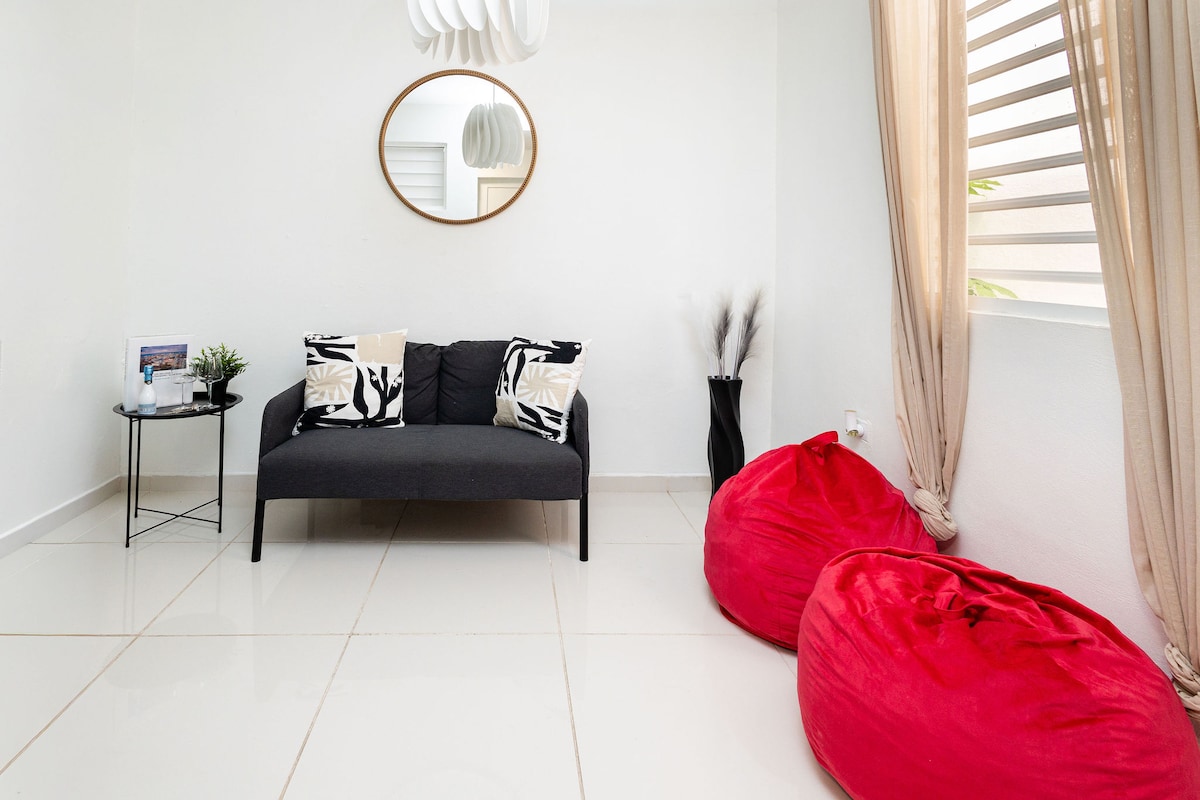 Բացահայտեք Սան Խուանի լավագույնը մեր բոլորովին նոր, եզակի վայրից FD Roosevelt Avenue - ում: Մենք օդանավակայանից ընդամենը 13 րոպե հեռավորության վրա ենք, Պլազա Լաս Ամերիկասից 5 րոպե հեռավորության վրա և արագ 16 րոպե մեքենայով մինչև Հին Սան Խուան և կղզու ցնցող լողափերը: Տեղավորվեք մտածված դիզայնով տարածքում, որտեղ կա լիովին կահավորված խոհանոց, արագ Wi - Fi և փափուկ մահճակալ, որը երաշխավորում է հանգիստ գիշերներ ։ Ամրագրեք ձեր այցն այսօր և ստեղծեք անմոռանալի հիշողություններ ։ Հարցեր ունե ՞ ք ։ Ցանկացած պահի ուղարկեք ինձ DM ։ Ուրախ եմ օգնել ։