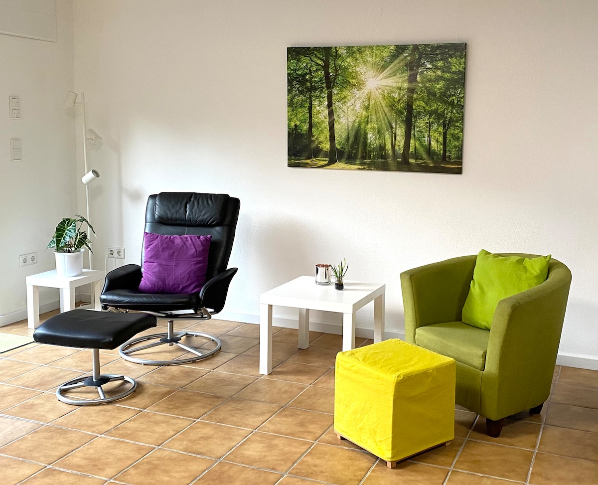 Հանգիստ, 2 սենյակ չծխող բնակարան 1 - 4 հոգու համար (40 քմ) առաջին հարկում: Դրսի ստվերով: Հյուրասենյակ /քնելու սենյակ: (երկտեղանի մահճակալ 1.85x2,00), ննջասենյակ: (երկհարկանի մահճակալ), լավ կահավորված խոհանոց, Senseo սրճեփ մեքենա: Լոգասենյակ ցնցուղով/սանհանգույցով: Անկողնային սպիտակեղենը / ցնցուղը և սրբիչները ներառված են: Ավտոբուսի և գնացքի կապերը կարելի է հասնել 2 րոպեում ՝ ոտքով: Carsharing անմիջապես շքամուտքից դուրս: Անվճար կայանատեղի հանրային տարածքում: Հնարավորություն ՝ մնալու բակի պարտեզում ՝ նստատեղերով և սեղանով: