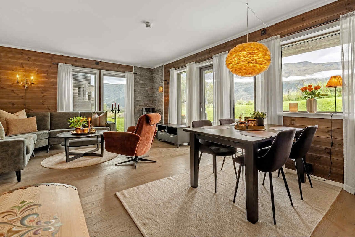 Ժամանակակից և ընդարձակ բնակարան ֆյորդից ընդամենը 50 մետր հեռավորության վրա։ Բաց հյուրասենյակ և խոհանոցային տարածք, որտեղից բացվում է տեսարան դեպի Էյռլանդսվանգեն և լեռները։ Հարմար է նրանց համար, ովքեր փնտրում են հանգիստ, խաղաղություն և հեշտ հասանելիություն Նորվեգիայի հիասքանչ բնությանը։ 3 ննջասենյակ ՝ 180 սմ երկտեղանի մահճակալներով Հյուրանոցային որակյալ սպիտակեղեն Հեշտ ինքնուրույն ժամանում Փողոցային կայանատեղի Անվճար Wi - Fi Հատակով ջեռուցում հյուրասենյակում, խոհանոցում և լոգասենյակում Հետևեք մեզ @ BaseAurland- ում ՝ արշավների ոգեշնչման և հիասքանչ լանդշաֆտի լուսանկարների համար ։