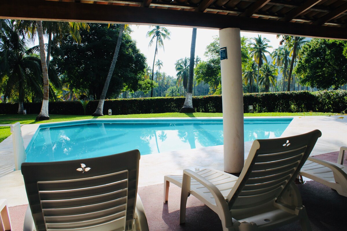 Գեղեցիկ համատիրությունը շատ լավ խնամված, հարմարավետ է Ակապուլկոյի Ոսկե տարածքում: Հիանալի է ընտանիքի համար, որը ցանկանում է վայելել իր հանգիստը, այն ունի 3 ննջասենյակ, A/C, լողավազան ընդհանուր տարածքում, կայանատեղի, Գերազանց վայր լողափից 10 րոպե հեռավորության վրա, La Costera M. Aleman հայտնի Baby" O , Walmart, ռեստորաններ, զվարճանալու շատ վայրեր: Սիրում եմ այս վայրը!! Պարզապես լավ վերաբերմունք ցուցաբերեք, ուզում եք լավ ժամանակ անցկացնել և բարի գալուստ:🌼