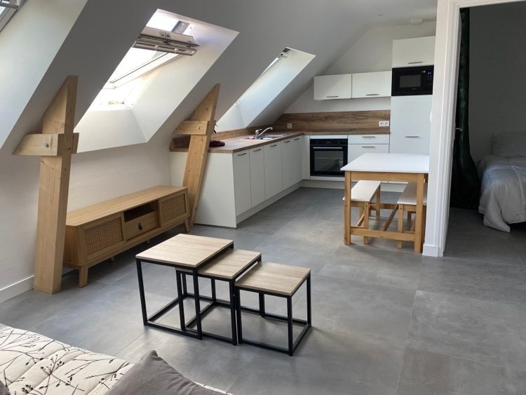 Welcome to L'IROIZH, a 30m² studio designed to offer you an unforgettable experience. Located right on the water, this haven of peace is in a quiet residence overlooking Concarneau's most beautiful beach, Les Sables Blancs. 180° sea view: enjoy an exclusive panorama every morning. Bed linen & towels provided ☺️ Independent entrance / key box Private parking space in front of the residence Ultra-fast fibre Wi-Fi: Stay connected or work from home