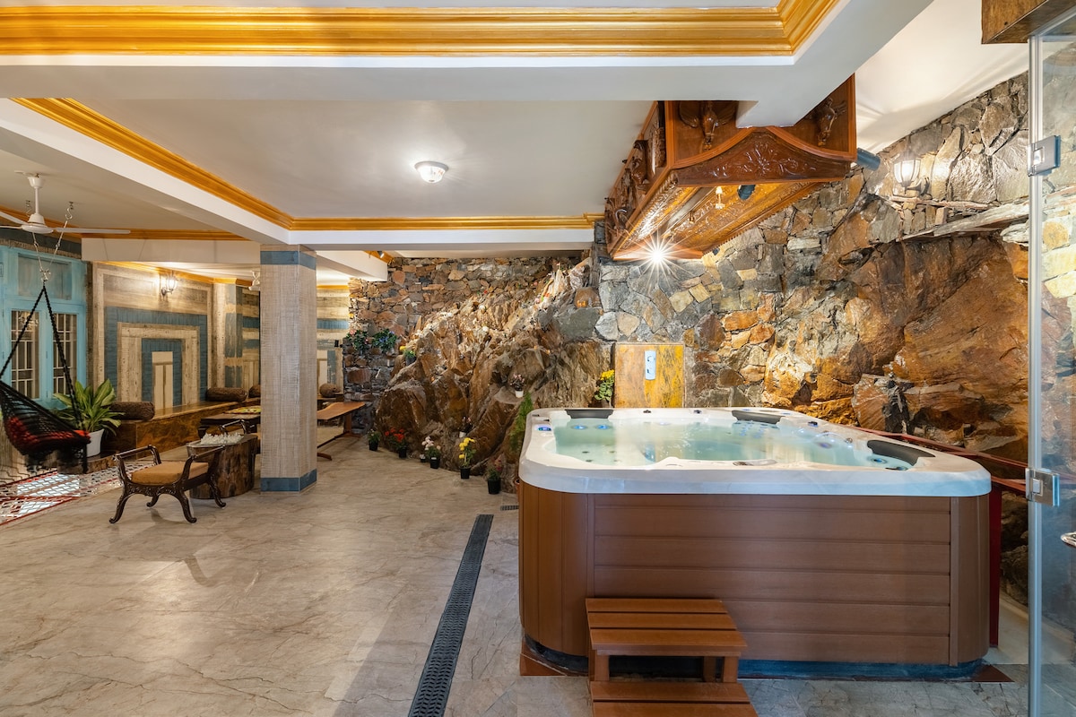 Privacy First: 4 large bedrooms 🛌, fully separated from each other in different blocks for complete privacy. Indoor Comfort: Huge gathering hall 🎉 & a spacious, well-equipped kitchen. Outdoor Luxury: Sparkling Swimming Pool 🏊 & relaxing Jacuzzi 🛁, plus garden sit-out areas. The View: Experience soothing, uninterrupted green farmland vistas 🌳 every day. Perfect Blend: Rustic comfort meets natural tranquility. Book your serene getaway now! ✨