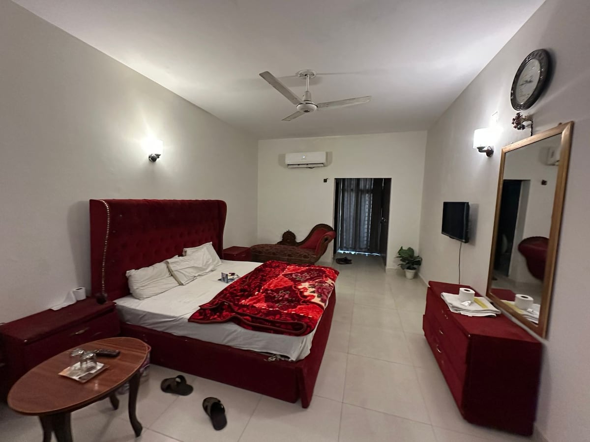 Welcome to your ideal home away from home in Gulberg, Lahore, where comfort, privacy, and convenience await. Perfect for both business and leisure travelers, our spacious room offers natural light, modern décor, and a peaceful ambiance. Enjoy a soft, cozy bed with premium linens, a comfortable sofa area, and a dedicated workspace for productivity. With high-speed Wi-Fi, you can work, stream, or stay connected anytime.