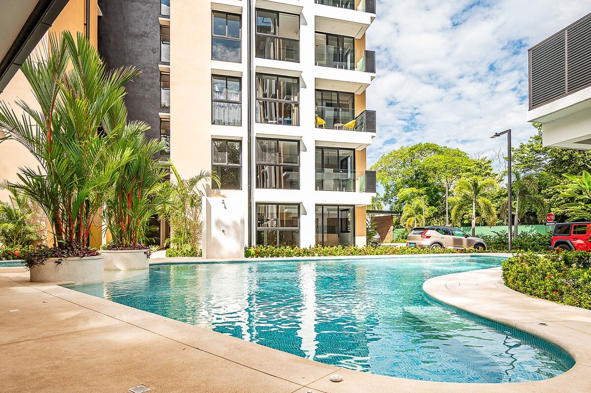 Փախչեք հանգստություն այս նոր գեղեցիկ դիզայնով կոնդոմինիումում, որտեղ լեռնային հիասքանչ տեսարանները համապատասխանում են ժամանակակից հարմարավետությանը: Պլայա Ջակոյի ավելի հանգիստ, ընտանեկան հարմարավետ հարավում գտնվող այս պայծառ և ընդարձակ 2 ննջասենյակով 2 լոգասենյակի կոնդոմինիումը կատարյալ հանգիստ է, եթե փափագում եք փարթամ կանաչ տեսարանների և ափամերձ մթնոլորտի համադրություն: Գտնվելով SJO օդանավակայանից ընդամենը 1,5 ժամ հեռավորության վրա ՝ այն գտնվում է լողափից մի քանի քայլ հեռավորության վրա և ոտքով 10 րոպե է մինչև քաղաքի կենտրոն, որտեղ կարող եք գտնել խանութների, մթերքների և ռեստորանների առատություն