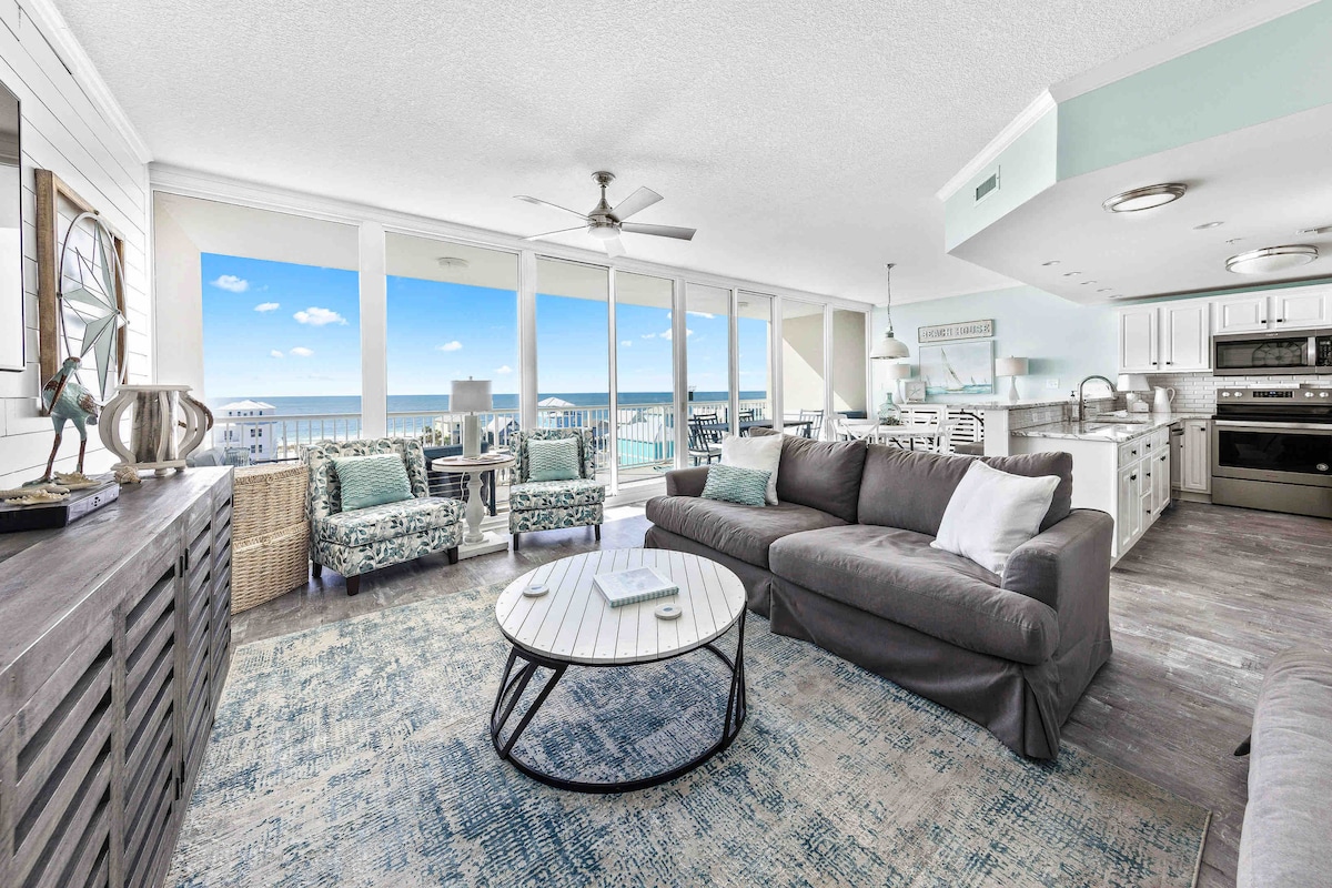 Bring the whole family together in this beautifully designed & thoughfull laid out beachfront condo. Offering spectacular views, multiple generous living areas & comfort for every generation. With room to gather & space to unwind, this home is perfect for grandparents, parents & kids or friend groups to share unforgettable beach days to enjoy together without feeling crowded. With panoramic views from floor-to-ceiling windows, this spacious condo offers breathtaking scenery sunrise to sunset.