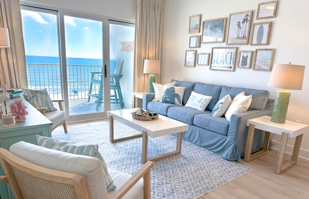 Bring your flip flops & kick back in this beachy condo overlooking the Gulf of Mexico. Beach Haven has front row seats and sweeping surf views of the Gulf and the State Pier from a curved balcony! Plus enjoy indoor/outdoor pools, hot tub & sauna! Coveted location is on the less busy end of the beach near Pier, Gulf State Park & Sea and Suds. Perfect for couples, solo, business, sport events & small families. Inquire for *snowbird* rates. Enjoy gorgeous sunsets, the sound of the surf and RELAX!
