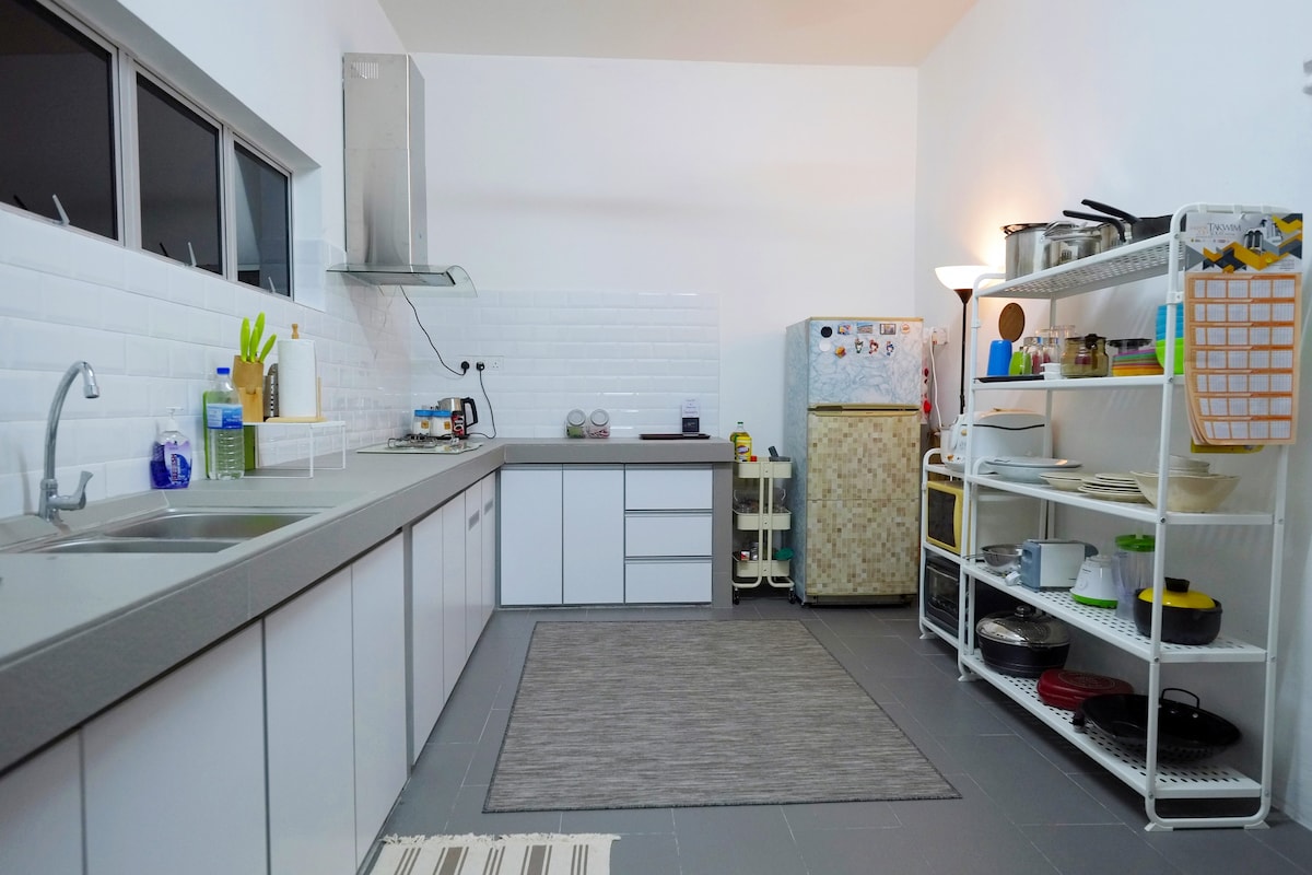 这是位于Ipoh市区,能够容纳17人的私人泳池民宿,在这难得的假日请带上您的家人和亲朋好友一起来体验和享受。 房源介绍: 屋外3个停车位 屋内2-3个停车场位 6间房,共有6张双人床&5张单人床 浴室介绍:2间 热水器,马桶,洗发水,沐浴露,毛巾 娱乐设备: Jacuzzi按摩泳池 Karaoke系统 Netflix 球桌,乒乓球桌,撞球桌,足球桌 小孩游戏 骰子色盅 麻将,lami BBQ烤架,厨房附有简单用具 厨房设备: 冷热饮水机 电子炉 烤面包机 微波炉 冰箱 洗衣机 Baby Chair 简单餐具 电饭锅 平底锅 其他设备: 灭火筒 药箱 国际插头 吹风机 蒸汽挂熨机 入住规则: 3pm后入住,12pm前退房 室内禁止抽烟 禁带榴莲山竹入室内食用 戏水后尽可能使用后面浴室,勿带水进入室内 其他事项: 为安全着想,室外和泳池视线范围设有监控摄像头,谢谢您的理解。 ⚠️ 温馨提醒: 若需举办派对或搭棚,请提前告知,会有额外收费。 在此祝您有个美好欢乐的假日时光。