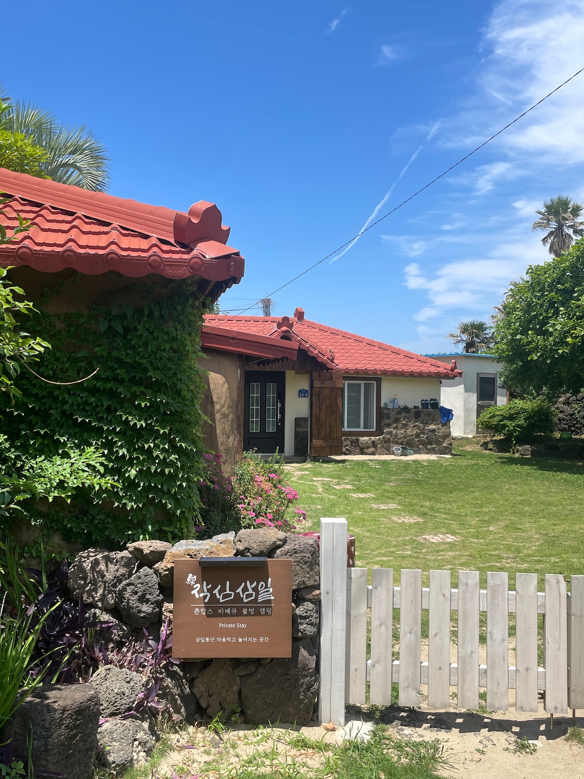 Սա Ջեջու Գամսոնգի մասնավոր քարե տուն է գյուղում ։ Կարող եք քայլել դեպի լողափ և մոտակա հայտնի սրճարաններ, ռեստորաններ և հարմարավետ խանութներ: Ընտանիքները/ընկերական հարաբերությունները/զույգերը/շները հնարավոր են: Կարող եք զվարճալի երեկույթ կազմակերպել ՝ լսելով LP - ներ ընդարձակ երեկույթների սենյակի ճաշասենյակում: Դուք կարող եք առանձին վայելել անվճար ջակուզի և մանղալ ՝ որպես մասնավոր տուն, որն օգտագործվում է միայն մեկ թիմի կողմից: Զգացեք Ջեջուի զգացողությունը մի կացարանում, որը վերափոխվել է էմոցիաներով Ջեջու կղզու հին տանը ։ Այն ունի ընդհանուր առմամբ երեք տուն ։ Կա երկու սենյակ, որտեղ կարող եք լավ քնել: Յուրաքանչյուր սենյակում կան զուգարաններ ։ Այն պատրաստված է խոհանոցի փոքր հատակից ։ Դրսի երկու փողոցներից մեկը ճաշասենյակ է, որտեղ կարող եք լսել ձեռքով կաթիլային սուրճ, 6 հոգանոց ճաշասեղան և LP երաժշտություն, և այն փոքրիկ լվացարանով վայր է ։ Դրսի երկրորդ փողոցը ջակուզին է ~ Դա մի վայր է, որտեղ շատ հյուրեր կարող են հոգնածությունը թեթևացնել Հալլասան և Օրեում մագլցելուց հետո, և դա շատ գեղեցիկ վայր է, որտեղ տաք ջուր է դուրս գալիս: Շների համար պարագաներ չկան, այնպես որ պետք է դրանք նախապես պատրաստեք։ Խնդրում ենք ստուգել Jeju Nang Nangsu Hyeopjae կաթնամթերքը և կապվել մեզ հետ ։